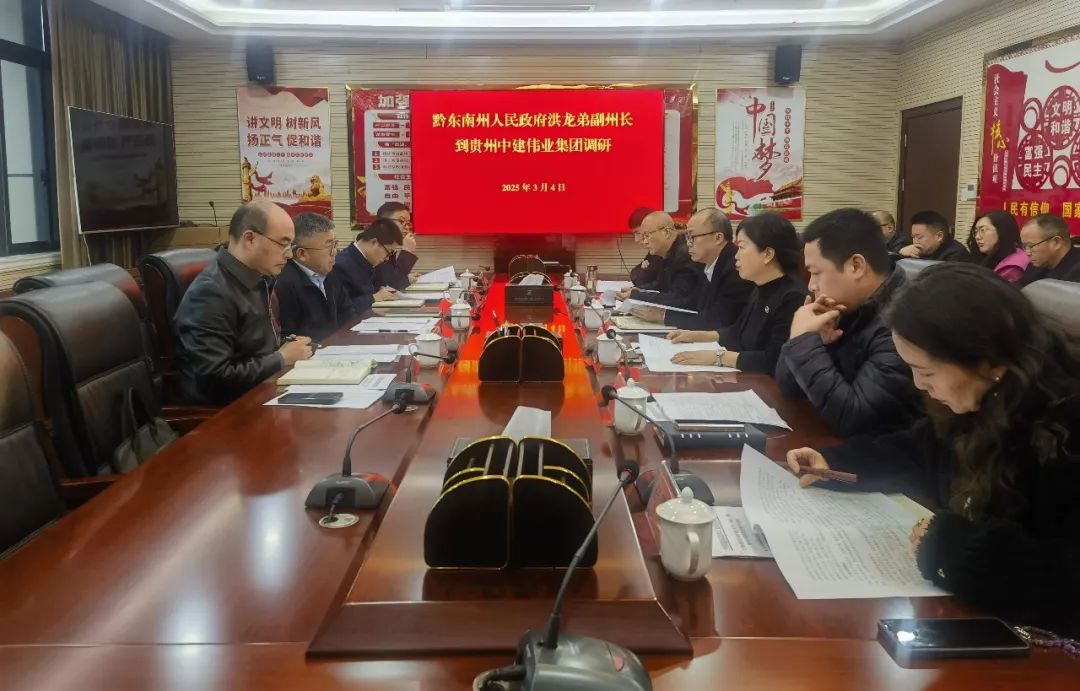 3月4日上午,州人民政府副州長洪龍弟帶隊到貴州中建偉業(yè)集團調研指導國企改革發(fā)展相關工作。州政府辦公室副主任孫慶斌,州國資委黨委委員、副主任羅幸榮陪同調研。貴州中建偉業(yè)集團領導班子參加調研座談會。